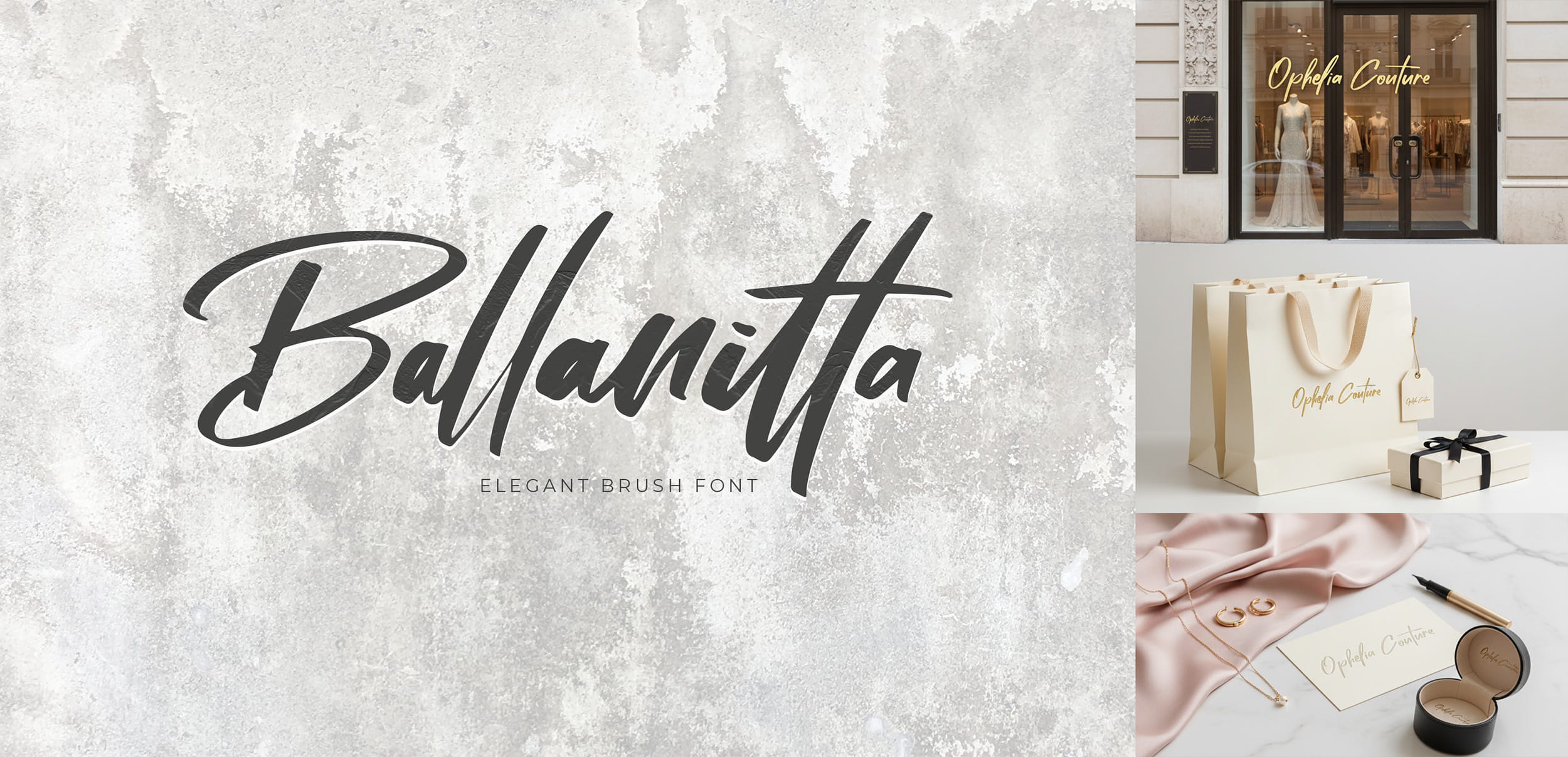 Ballanitta is an expressive brush script font with bold strokes and elegant curves. Its dynamic and stylish character makes it perfect for fashion boutiques, creative brands, and statement logos that want to look eye-catching and luxurious.