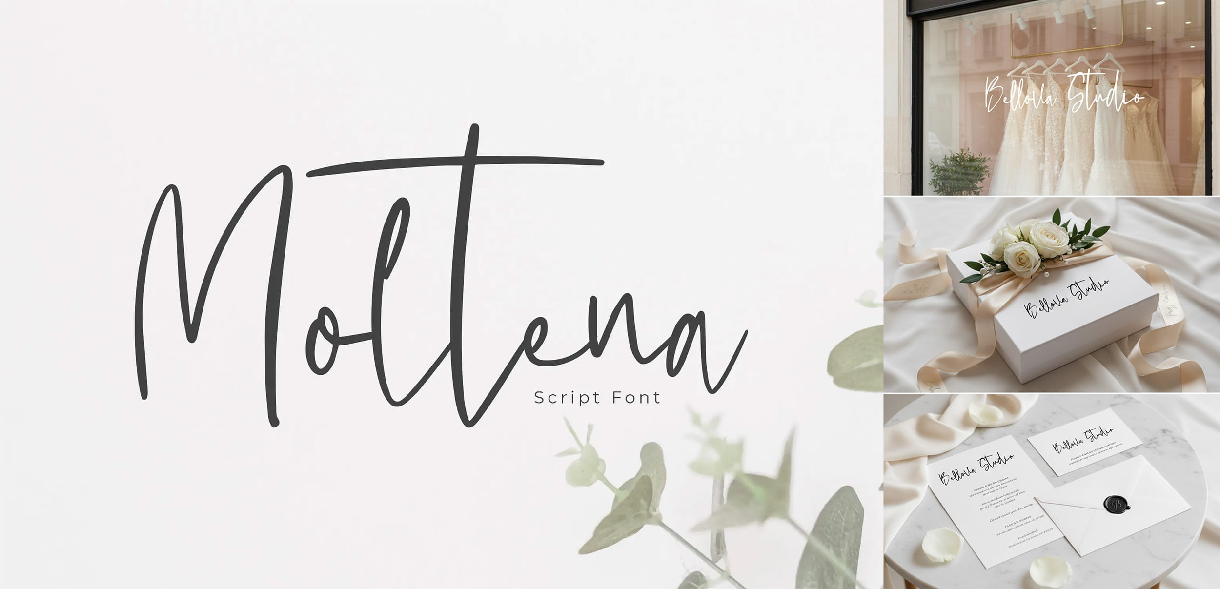 Moltena is an elegant handbrush script font with flowing strokes and a refined character. Its natural brush texture makes it ideal for fashion logos, product packaging, and luxury branding that need a bold yet sophisticated signature style.