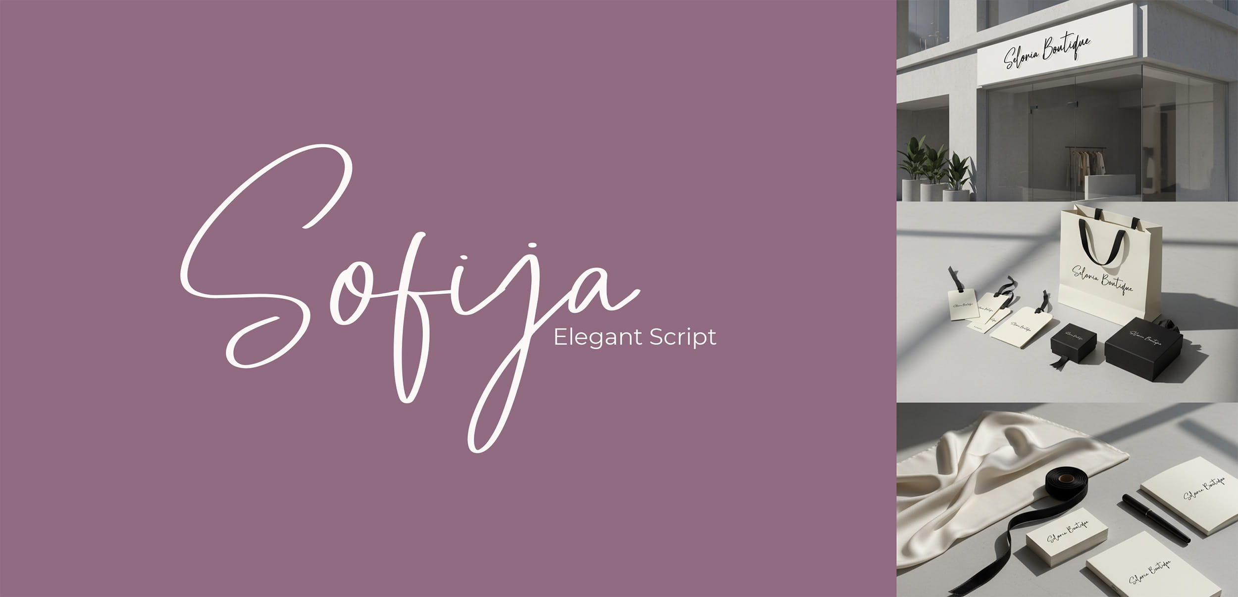 Sofija is a graceful script font with beautifully crafted letterforms that feel premium and artistic. This font works perfectly for boutique logos, skincare brands, wedding designs, and high-end product visuals that need an elegant handwritten touch.