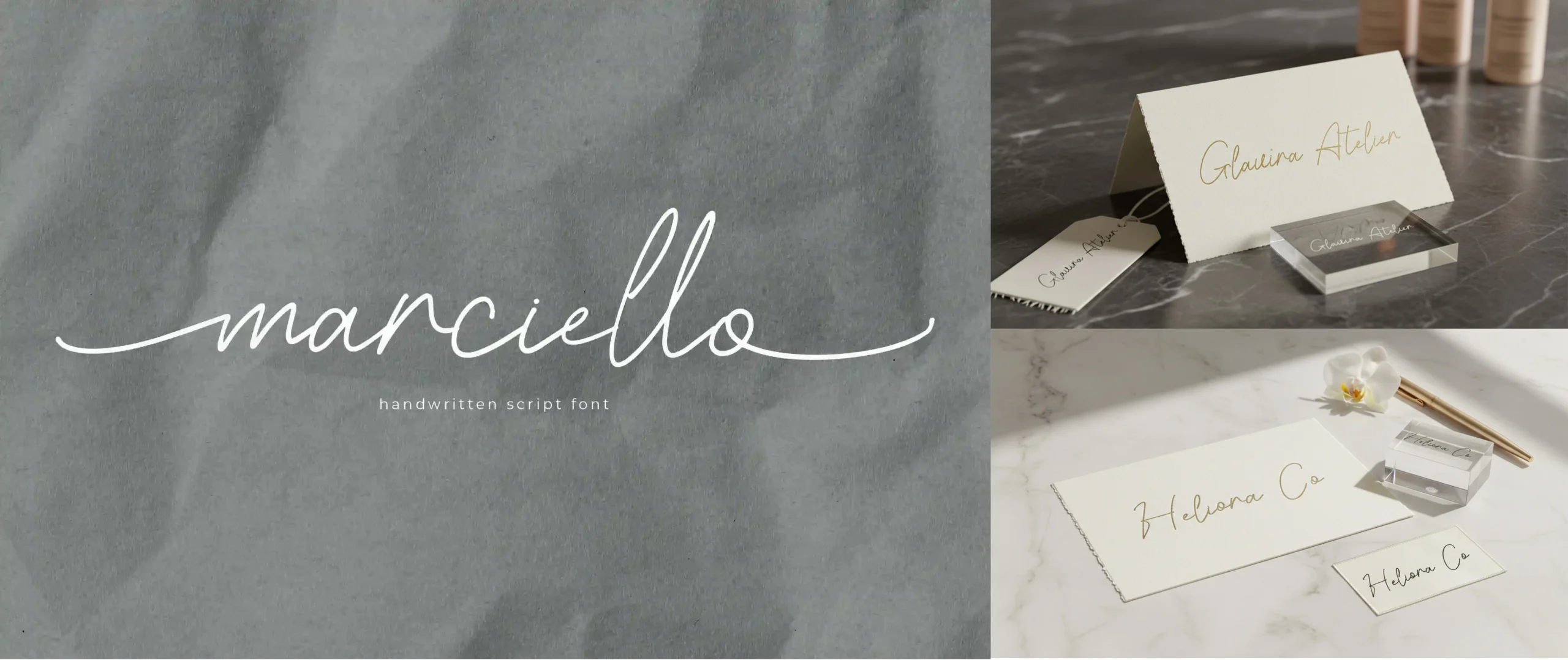 Marciello features a smooth monoline script style that looks elegant, clean, and beautifully handwritten. Its refined curves and consistent strokes give your logo a sophisticated and timeless feel. This font works especially well for wedding brands, fashion labels, luxury products, and personal signature logos.