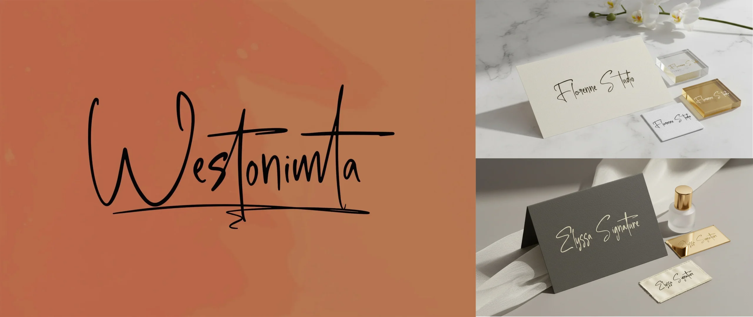 A signature logo is a type of logo that mimics a handwritten signature, giving your brand a personal, elegant, and exclusive feel. This style is widely used by fashion brands, beauty labels, photographers, artists, and premium businesses because it creates an emotional connection and builds trust. A great signature font helps communicate your brand’s personality — whether it feels luxurious, modern, feminine, or creative. Signature fonts are commonly applied to logos, product packaging, social media branding, websites, business cards, and promotional materials, making them a powerful tool in visual identity.